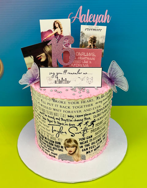 Calling all Swifties! The Cake Girl’s custom Taylor Swift theme cakes are the ultimate way to celebrate your favorite era. Inspired by the Eras Tour, iconic albums, lyrics, and unforgettable looks, these cakes are perfect for birthdays, album release parties, girls' nights, and fan events. Whether you're channeling "Lover" pastels, "Reputation" edge, or "Midnights" shimmer, we’ll bring your favorite Taylor vibe to life with stunning, handcrafted designs and premium ingredients. Add edible lyric toppers, glitter details, friendship bracelets, or signature color palettes—anything to make your cake as iconic as the music. Available for pickup or delivery in Tampa Bay and surrounding areas. Make the moment sparkle—order your Taylor Swift theme cake today!